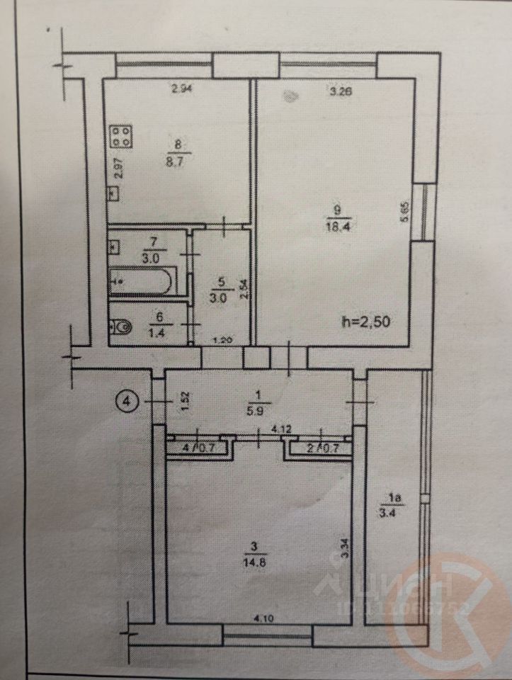 Квартира общей площадью 56,6 кв.м, комнаты раздельные, туалет с ванной комнатой раздельный. Отопление в квартире центральное, дом не газифицирован, на горячую воду установлен бойлер.