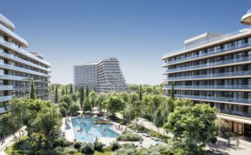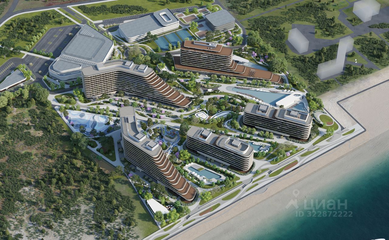 Закрытая благоустроенная охраняемая территория площадью 14 Га, круглогодичные бассейны (5), SPA-центр, 2 парка, 4 сквера, ресепшн, лобби, кафе и рестораны, тренажёрный зал, собственный оборудованный пляж и набережная (30м), детские и спортивные площадки, отдельный двухэтажный детский центр, паркинги.