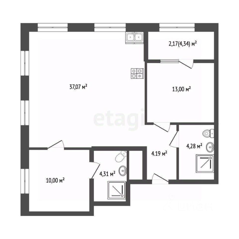 Продается двухкомнатная просторная квартира в жилом комплексе ЖК "Инжир", общей площадью 75.3 м² кв.м.
