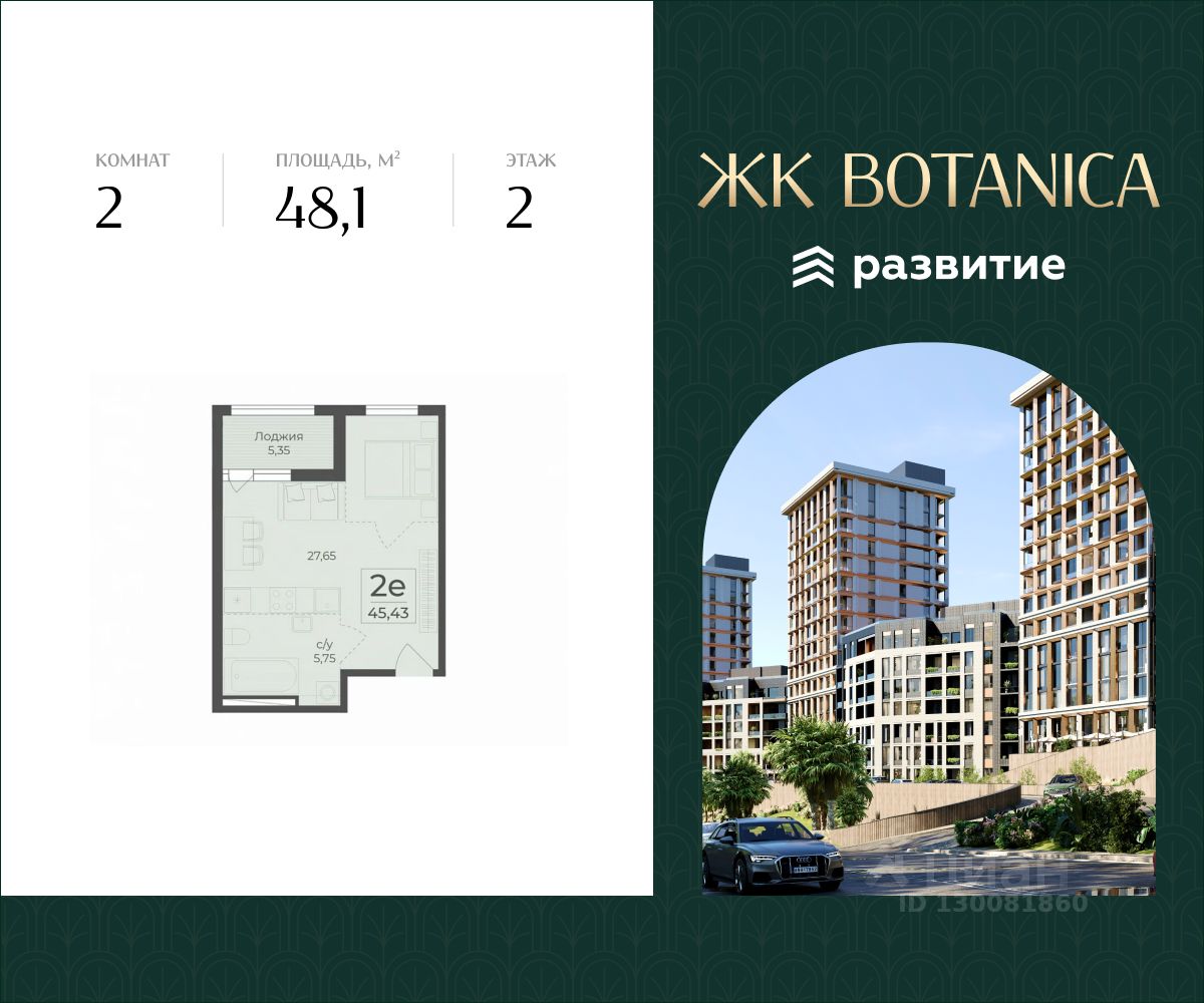 В продаже квартира площадью 48.10 кв. м с отделкой White Box, расположенная в жилом комплексе бизнес-класса Botanica. Проект от федерального застройщика ГК "Развитие" находится в живописном месте Ялты, вблизи Массандровского парка. Botanica - квартиры у моря для жизни и инвестиций.