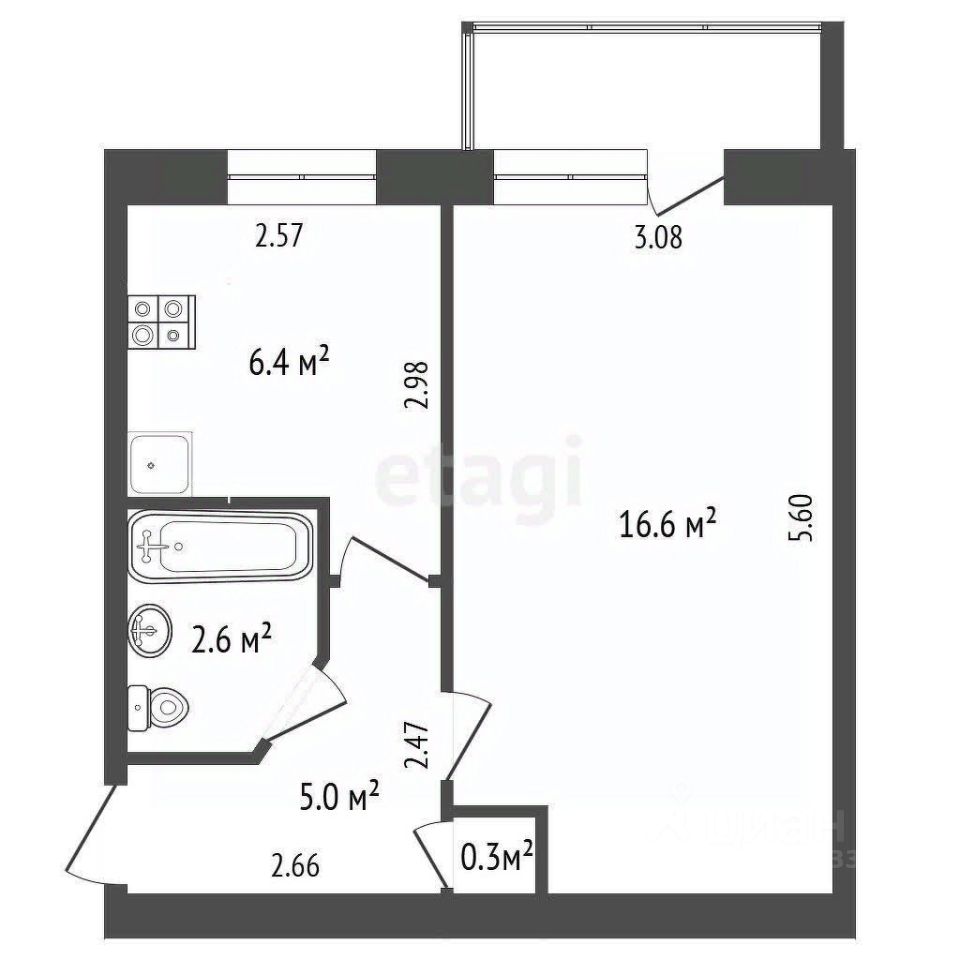 Общая площадь квартиры составляет 30.9 кв. м, кухня — 6.4 кв. м, расположена на 5 этаже пятиэтажного дома. В квартире есть гардеробная. Квартира полностью готова для комфортного проживания: в ней есть кровать, два дивана, столы, кресло-кровать, кондиционер, телевизор, газовая плита, холодильник, микроволновая печь и посуда. Постоянная холодная вода, горячая вода подается от газовой колонки, балкон застеклен. Высота потолков 2.6 м.