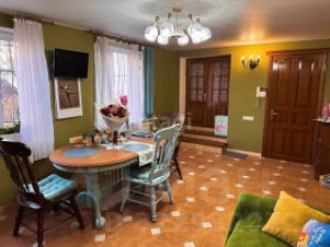 В квартире выполнен индивидуальный дизайнерский ремонт с применением самых качественных материалов имеется большая столовая, гостиная, прихожая. Есть гардеробная. Сауна. Мастерская. Запас воды 500 литров с насосом. Свой сад. Зона барбекю. Полы с подогревом.