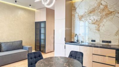 Выполнен новый дизайнерский ремонт с использованием качественных материалов. Квартира полностью меблирована и готова к проживанию.