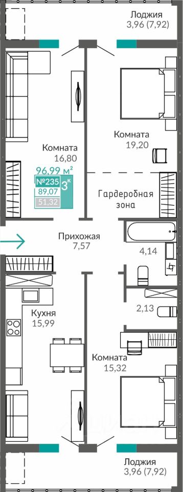 Общая площадь89,07 м²
