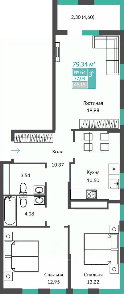 Продаётся 3-комнатная квартира в строящемся доме (Корпус 1), срок сдачи: II-кв. 2027, общей площадью 77.04 кв.м., на 8 этаже. Новый жилой комплекс "Единство" от застройщика "Монолит (Крым)" расположен по адресу Республика Крым, Симферопольский район, село Чистенькое