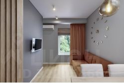 Апартаменты оформлены в современном дизайнерском стиле. В квартире есть все необходимое для комфортного проживания: современная мебель и техника.