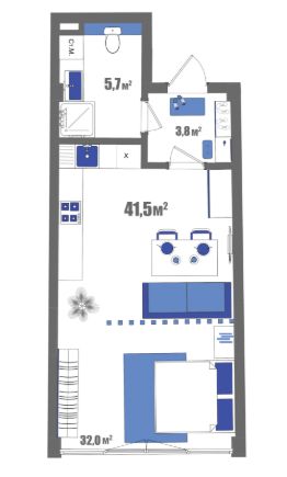 Продаются 1-комнатные апартаменты в сданном доме (корпус А), срок сдачи: III-кв. 2024, общей площадью 41.5 кв.м., на 1 этаже.