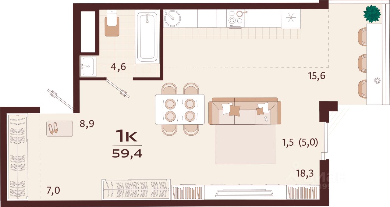 Продаётся 1-комнатная квартира в строящемся доме (Корпус 1), срок сдачи: II-кв. 2027, общей площадью 59.4 кв.м., на 4 этаже. Жилой комплекс бизнес-класса "РОЯЛТА" от застройщика "ГК ТОЧНО" в городе Ялта Республики Крым на улице Спендиарова.
