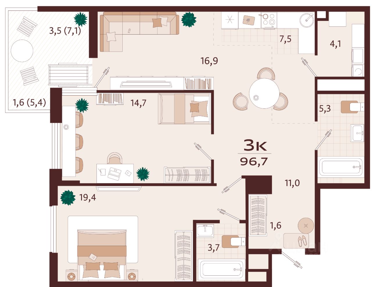 Продаётся 3-комнатная квартира в строящемся доме (Корпус 1), срок сдачи: II-кв. 2027, общей площадью 96.7 кв.м., на 5 этаже. Жилой комплекс бизнес-класса "РОЯЛТА" от застройщика "ГК ТОЧНО" в городе Ялта Республики Крым на улице Спендиарова.