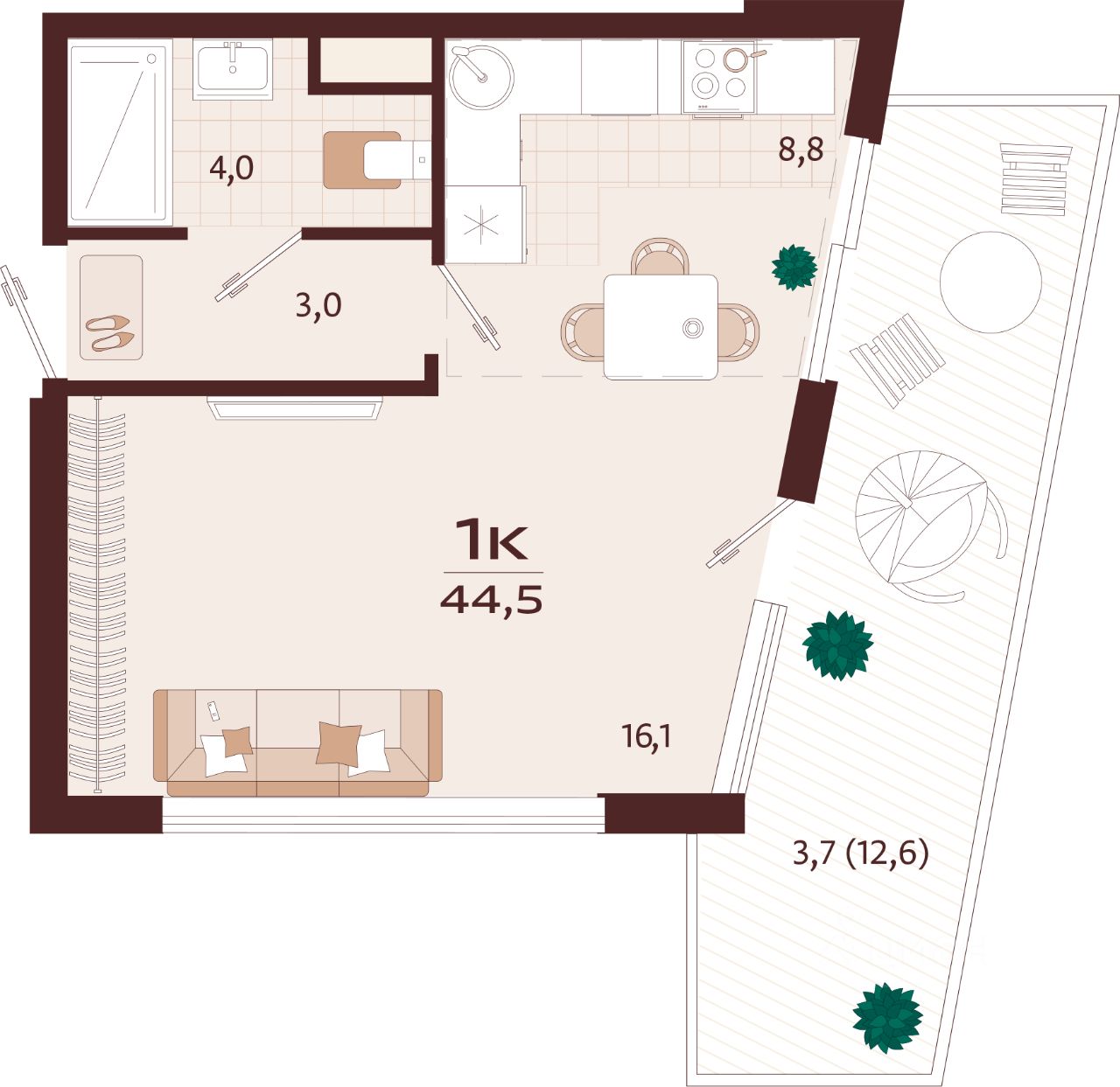 Продаётся 1-комнатная квартира в строящемся доме (Корпус 1), срок сдачи: II-кв. 2027, общей площадью 44.5 кв.м., на 7 этаже. Жилой комплекс бизнес-класса "РОЯЛТА" от застройщика "ГК ТОЧНО" в городе Ялта Республики Крым на улице Спендиарова.