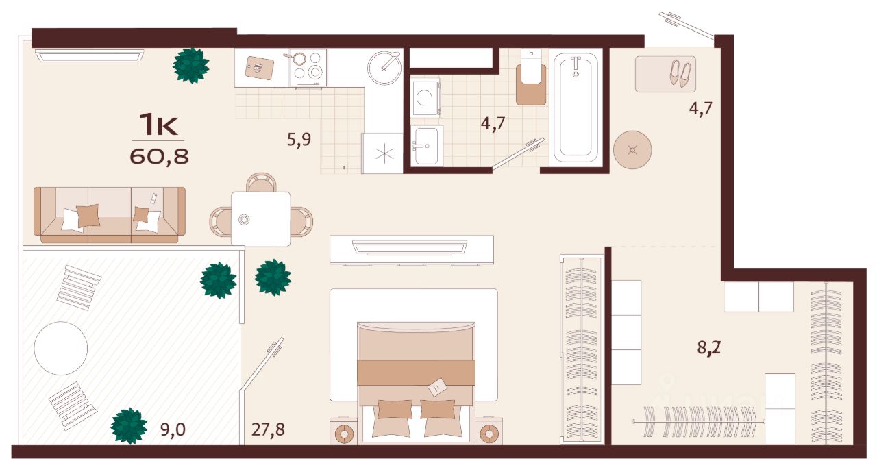 60,8 м²
