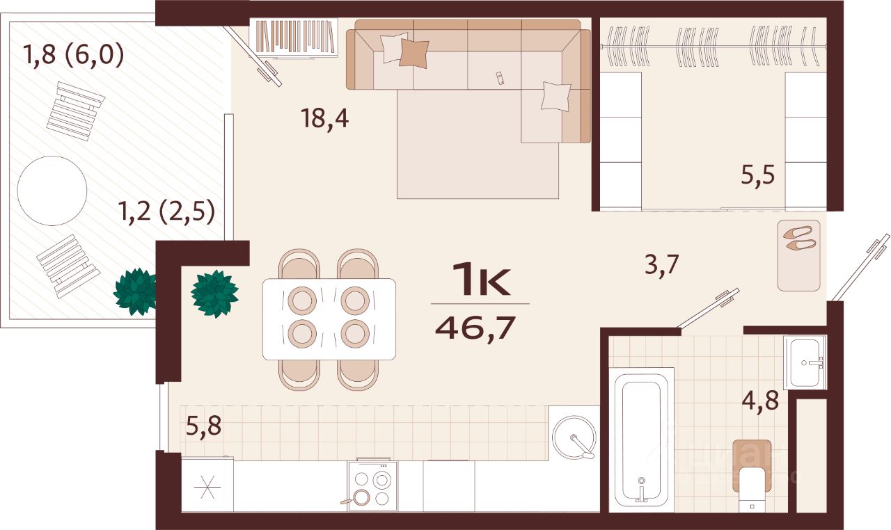 46,7 м²