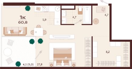 60,8 м²