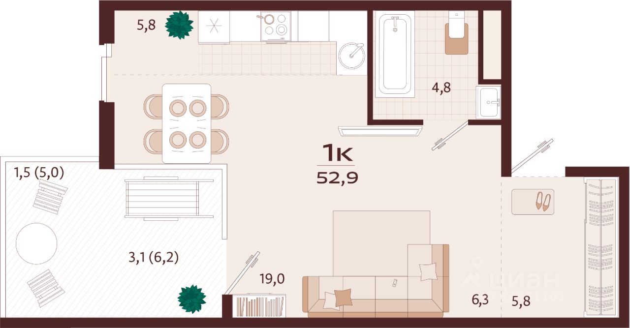 Продаётся 1-комнатная квартира в строящемся доме (Корпус 1), срок сдачи: II-кв. 2027, общей площадью 52.9 кв.м., на 6 этаже. Жилой комплекс бизнес-класса "РОЯЛТА" от застройщика "ГК ТОЧНО" в городе Ялта Республики Крым на улице Спендиарова.