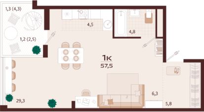 Продаётся 1-комнатная квартира в строящемся доме (Корпус 1), срок сдачи: II-кв. 2027, общей площадью 57.5 кв.м., на 7 этаже. Жилой комплекс бизнес-класса "РОЯЛТА" от застройщика "ГК ТОЧНО" в городе Ялта Республики Крым на улице Спендиарова.