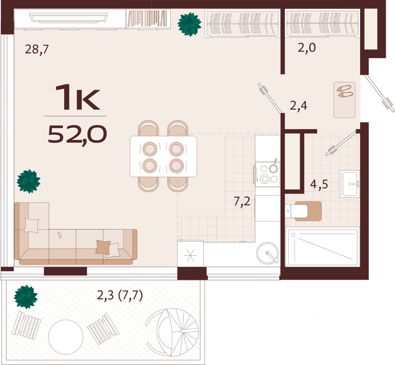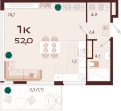 52,5 м²