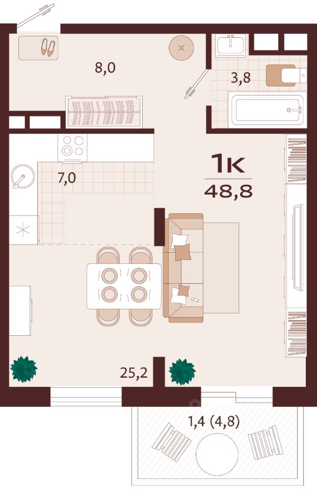 Продаётся 1-комнатная квартира в строящемся доме (Корпус 3), срок сдачи: II-кв. 2027, общей площадью 48.8 кв.м., на 4 этаже. Жилой комплекс бизнес-класса "РОЯЛТА" от застройщика "ГК ТОЧНО" в городе Ялта Республики Крым на улице Спендиарова.