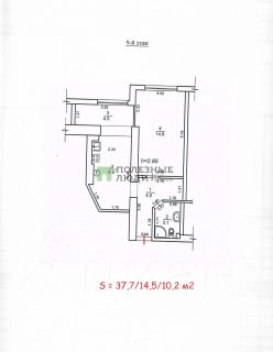 На 9/10 эт. дома, сдан в эксплуатацию 2017 году. Общая площадь 37.9 м2, жилая 15,5 м2, кухня- столовая 10,2 м2, с/у совмещённый, лоджия (застеклена).
