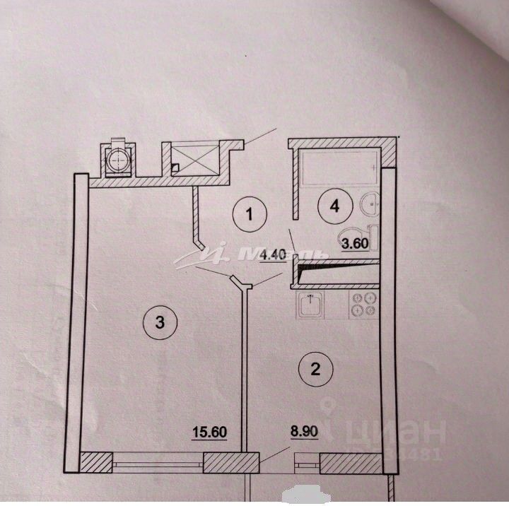 Площадь: 36,1/15,6/8,9 кв.м.