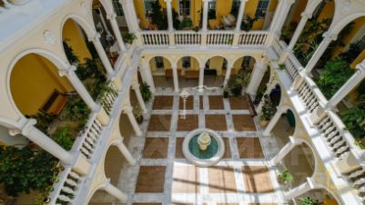 Великолепный архитектурный памятник, выполнен в стиле неоклассицизма, привлекает взгляды своей изысканной архитектурой и величественностью. Его фасад украшен изящными колоннами, которые придают зданию особый шарм и уникальность. Однако настоящей изюминкой этого отеля является его потрясающий атриум с панорамной крышей. Свет, проникающий сквозь стеклянную крышу, создает волшебную атмосферу, наполняя атриум теплотой и светом.