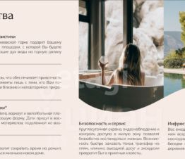 Величественные горы, целебная можжевеловая роща, свежий воздух, пение птиц и блики солнца на морской глади. Эстетика жизни на лоне природы. Уникальное расположение жилого комплекса среди живописных гор создает ощущение единения с природой, при этом до ближайших объектов городской инфраструктуры вы сможете добраться на автомобиле за 7-10 минут, а до моря всего за 5 минут.