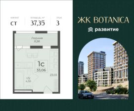 Продается квартира площадью 37.35 кв. м с отделкой white box на 3 этаже 15 этажного дома. Квартира находится в 4 секции жилого комплекса бизнес-класса Botanica.