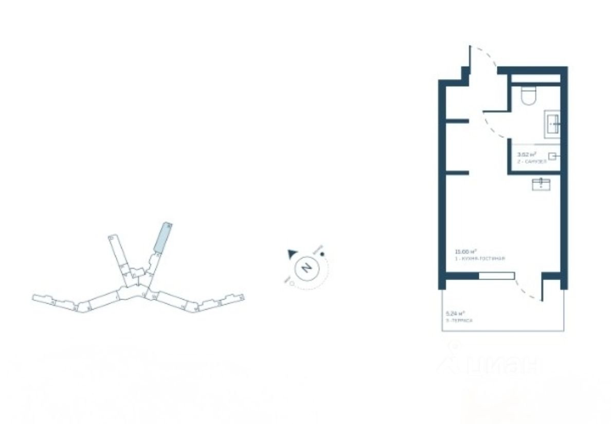 Общая площaдь 24,52 м2, кухня-гостиная 15,66м, санузел 3,62м, терраса 5,24м. Вид из окон во двор и на море.
