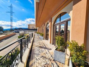 Две террасы лаунж зоны на крыше с панорамным видом на море, горы и виноградники, терраса площадью 400 м2 во дворе с зонтами и ротанговой мебелью, зона барбекю, детская площадка с качелями и горками, детская комната с игрушками, телевизором и игровой приставкой (в зоне ресепшн), спортивная площадка.