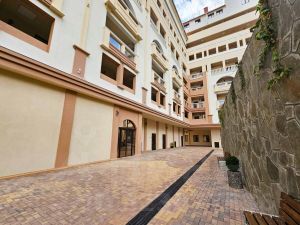 На территории жилого комплекса есть: бассейн с подогревом и зоной загара, турецкий хамам, двухуровневый подземный паркинг на 170 автомобилей, кафетерий и Фреш-бар в зоне ресепшн, прогулочный променад со столиками и зонтиками у кафетерия с видом на море, продуктовый магазин на первом этаже,