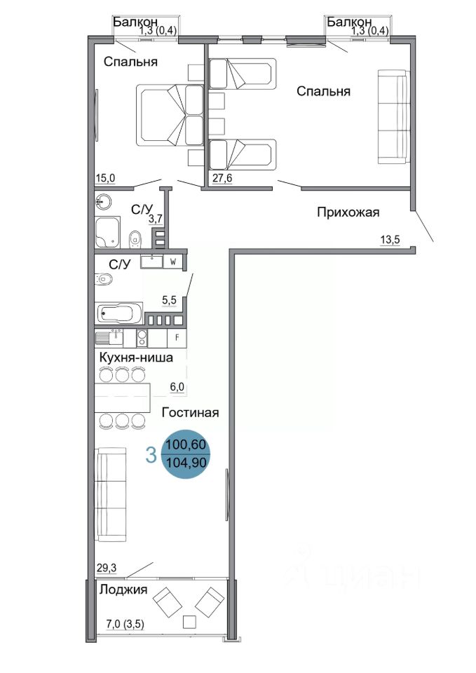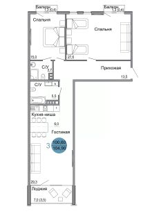 Общая площадь104,9 м²