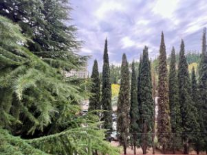 - просторная терраса с видом на вечнозеленые деревья.