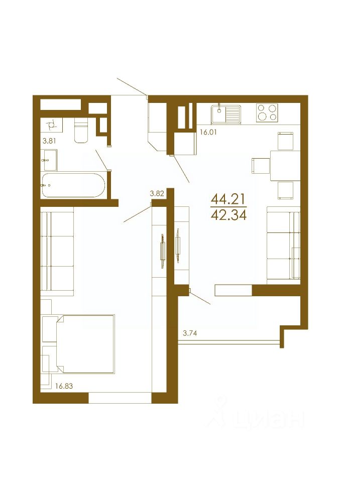 Продаётся 1-комнатная квартира в строящемся доме (Дом 3), срок сдачи: II-кв. 2026, общей площадью 44.21 кв.м., на 8 этаже. Жилой комплекс "Крокус" от застройщика "СЗ АСС" в Республике Крым, село Белоглинка.