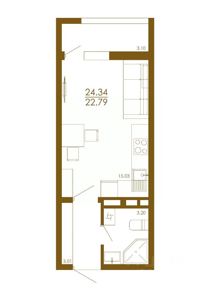 Продаётся студия в строящемся доме (Дом 3), срок сдачи: II-кв. 2026, общей площадью 24.34 кв.м., на 8 этаже. Жилой комплекс "Крокус" от застройщика "СЗ АСС" в Республике Крым, село Белоглинка.