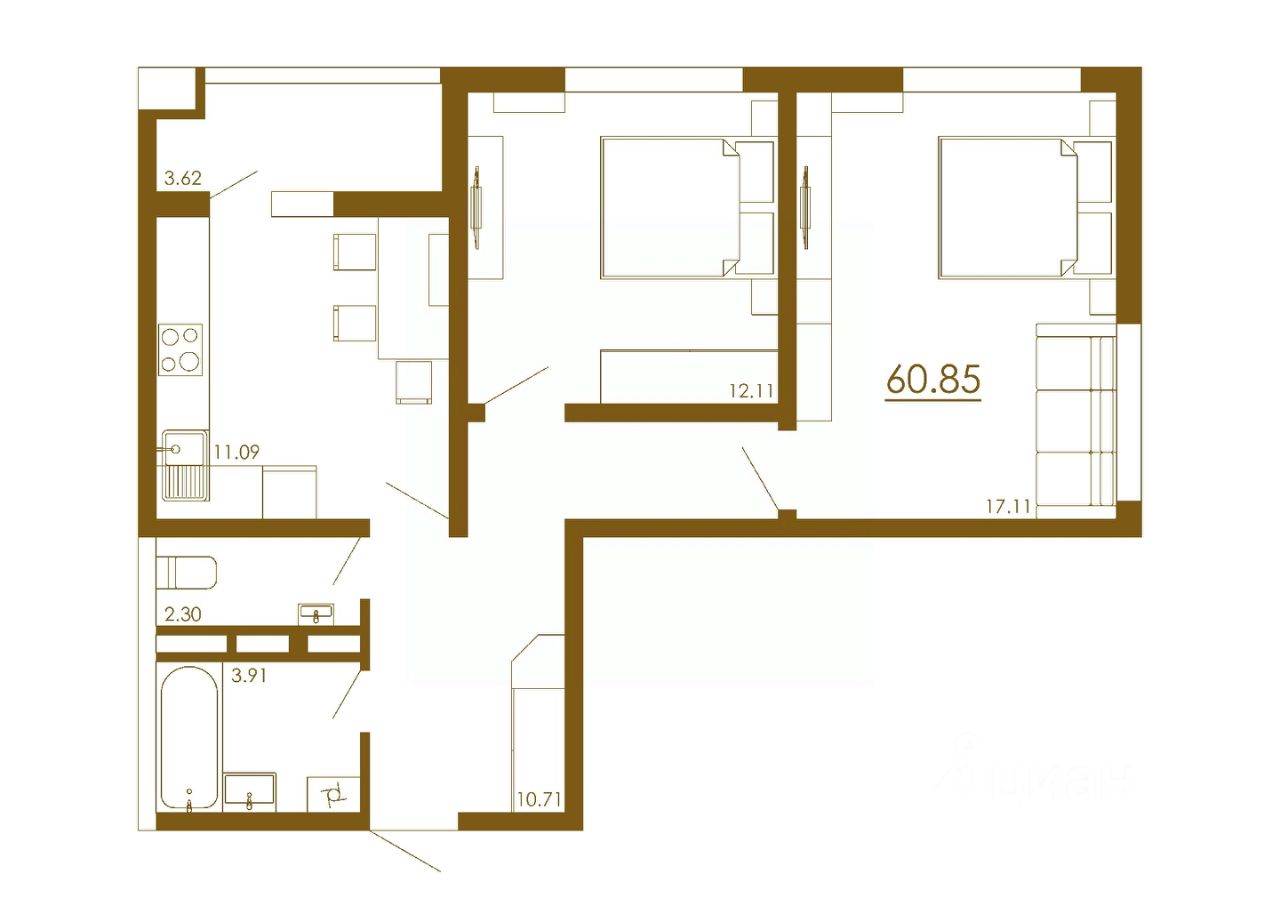 Продаётся 2-комнатная квартира в строящемся доме (Дом 2), срок сдачи: II-кв. 2026, общей площадью 60.85 кв.м., на 11 этаже. Жилой комплекс "Крокус" от застройщика "СЗ АСС" в Республике Крым, село Белоглинка.