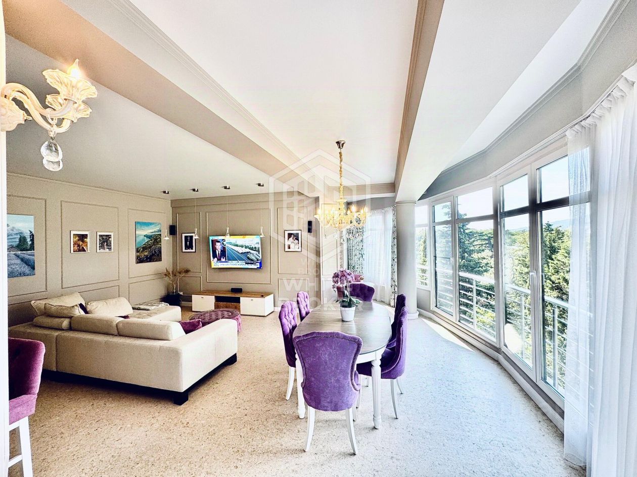 Такое удивительное расположение дома позволяет вам наслаждаться и морем,и горами и самим парком. Так же расположение дома перед самим парком дает сто процентную уверенность,что ничего уже перед комплексом не застроят, не испортят ни вид ни атмосферу.Квартира с дизайнерским ремонтом и мебелью.Большая гостинная с выделенной зоной кухни и встроенной террасой позволяет комфортно расположиться большой семье, либо компании. Грамотное зонирование добавляет определенные удобства в расположении,есть возможность одновременно пользоваться кухней,при этом не мешая гостям наслаждаться видами в отдельной части гостинной .Две раздельные спальни , два сан.узла и удобный коридор с зеркалами и вместительным шкафом. На площадке всего две квартиры со своим отдельным тамбуром 8,25 м2 и помещение для котельной с винным холодильником. Великолепное сочетание морского воздуха с горным,насыщается ароматами парка и создает ощущение того,что ты находишься где то в заповедной зоне,вдали от города. Но сам дом , центральный его подъезд выходит на центральную улицу,где в пешей доступности есть все необходимое для проживания,отдыха и развлечения.До пляжа Санатория Дюльбер или Русалочка 15,20 минут прогулочным шагом.Это одно из немногих предложений на рынке ЮБК в котором столько сочетаний природной красоты,комфорта и удобств для проживания и отдыха.По соседству находится гос.доча , что еще раз подтверждает убедительность всех перечисленных характеристик.Документы готовы к сделке.