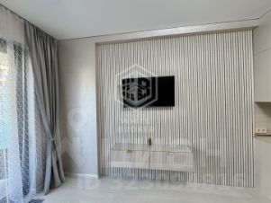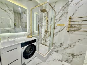 Сделан качественный ремонт по дизайн-проекту, установлена сантехника, мебель, кондиционер, кухонный гарнитур и встраиваемая техника
