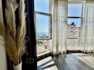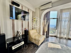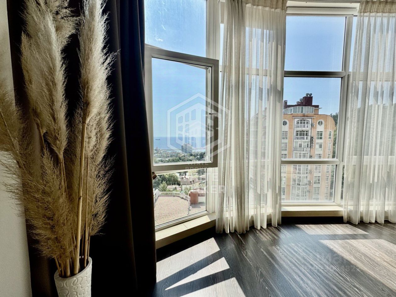 Просторная студия 61,3 м с панорамными окнами и открытым видом на море дарит много света и чувство пространства.