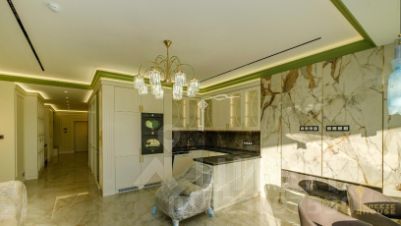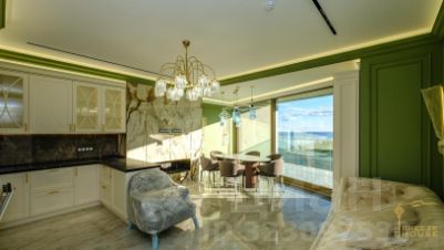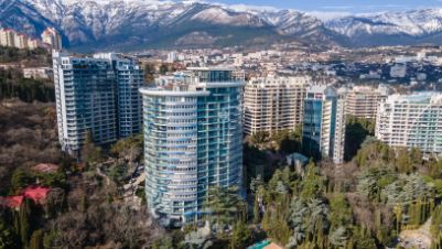 Продаются 4-к. премиум-апартаменты площадью 130,8 м² с видом на горы и город, расположенные на 17 этаже 18-этажного многофункционального комплекса "Зазеркалье" в элитном районе г. Ялты - Приморском Парке им. Гагарина.