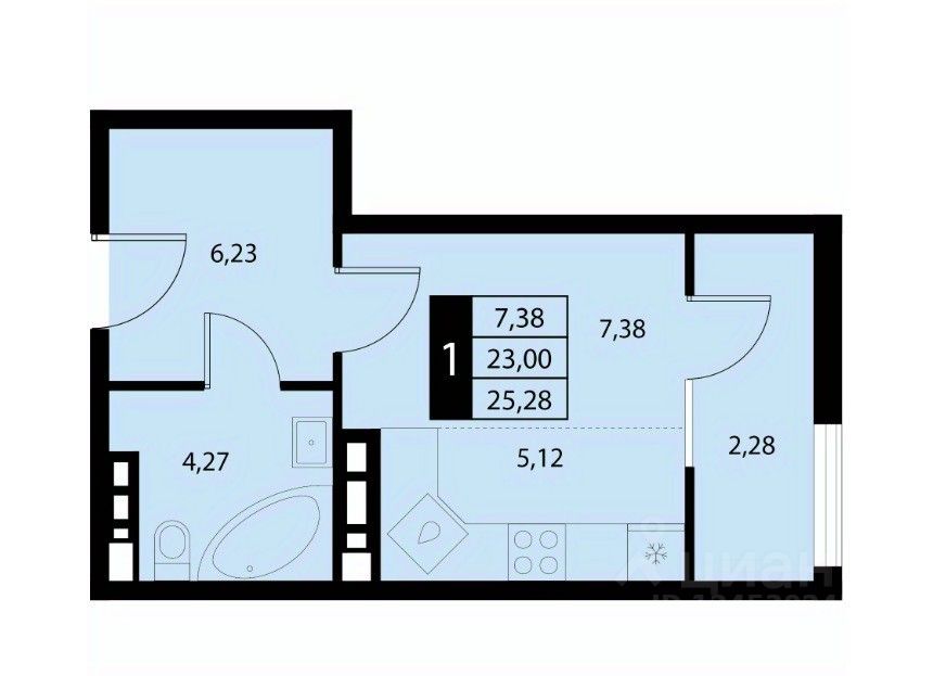 Арт. 111713461 Удобная студия, большая гардеробная, просторная лоджия, вид на горы.