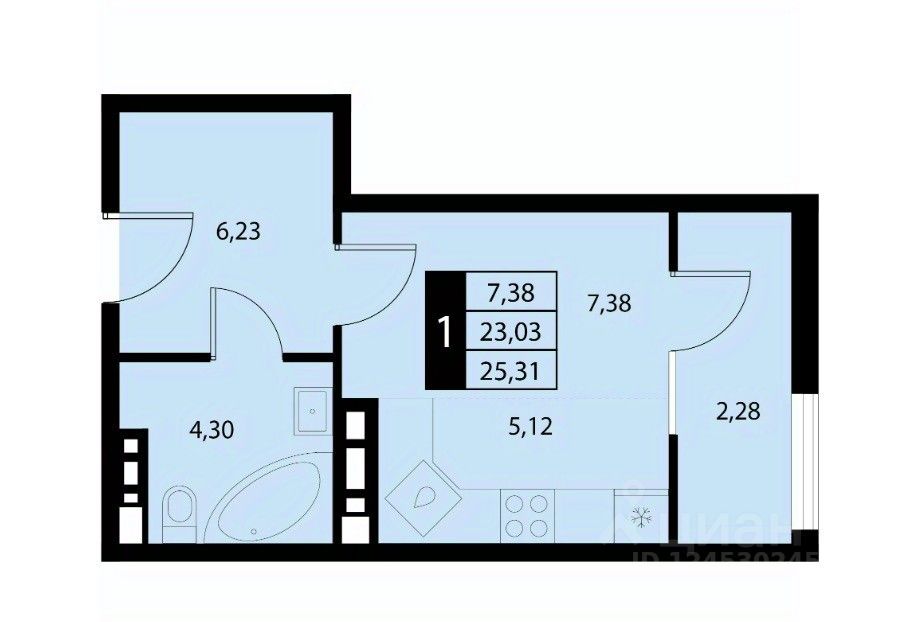 Арт. 111713383 Удобная студия, большая гардеробная, просторная лоджия, вид на горы.