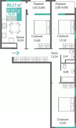Продаётся 3-комнатная квартира в строящемся доме (Этап 1), срок сдачи: I-кв. 2028, общей площадью 80.27 кв.м., на 8 этаже. Новый жилой комплекс от ГК "Монолит" по адресу: Республика Крым, Симферополь, улица Святителя Гурия