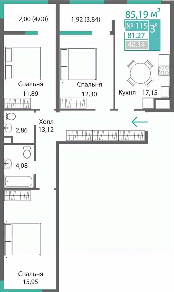 Продаётся 3-комнатная квартира в строящемся доме (Этап 1), срок сдачи: I-кв. 2028, общей площадью 81.27 кв.м., на 1 этаже. Новый жилой комплекс от ГК "Монолит" по адресу: Республика Крым, Симферополь, улица Святителя Гурия