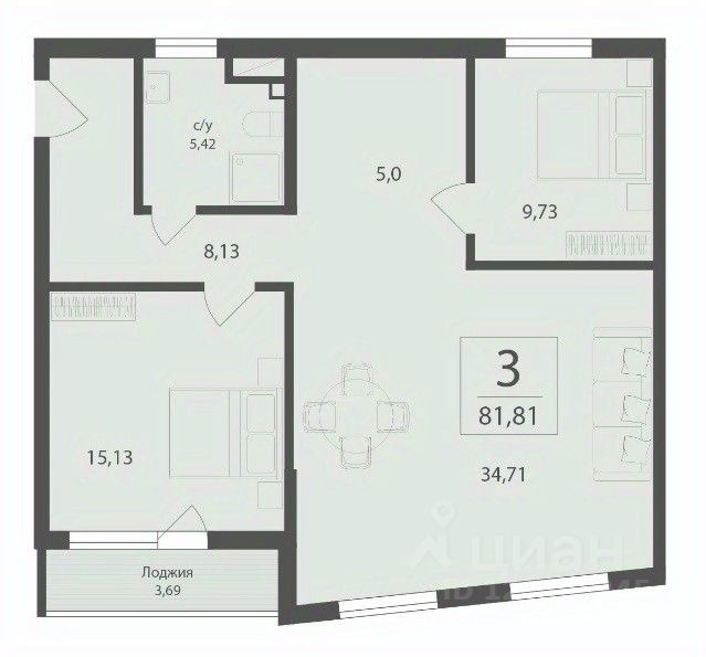 -Высокие потолки: 3 метра, создающие ощущение простора и свободы