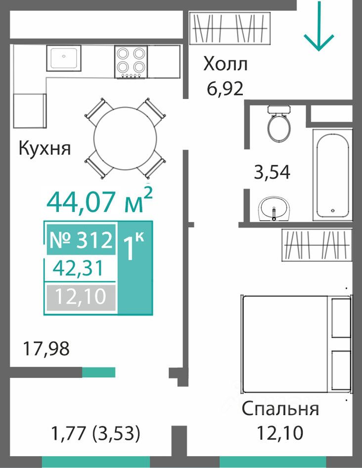 Продаётся 1-комнатная квартира в строящемся доме (Этап 1), срок сдачи: I-кв. 2028, общей площадью 42.31 кв.м., на 3 этаже. Новый жилой комплекс от ГК "Монолит" по адресу: Республика Крым, Симферополь, улица Святителя Гурия