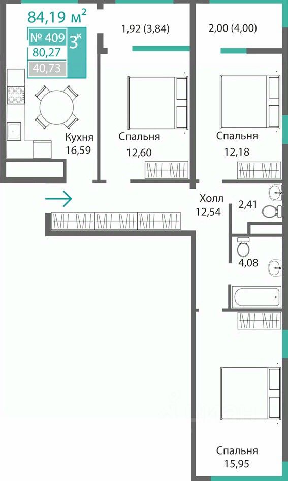 Продаётся 3-комнатная квартира в строящемся доме (Этап 1), срок сдачи: I-кв. 2028, общей площадью 80.27 кв.м., на 4 этаже. Новый жилой комплекс от ГК "Монолит" по адресу: Республика Крым, Симферополь, улица Святителя Гурия