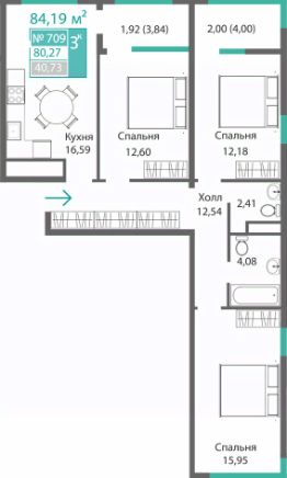 Продаётся 3-комнатная квартира в строящемся доме (Этап 1), срок сдачи: I-кв. 2028, общей площадью 80.27 кв.м., на 7 этаже. Новый жилой комплекс от ГК "Монолит" по адресу: Республика Крым, Симферополь, улица Святителя Гурия