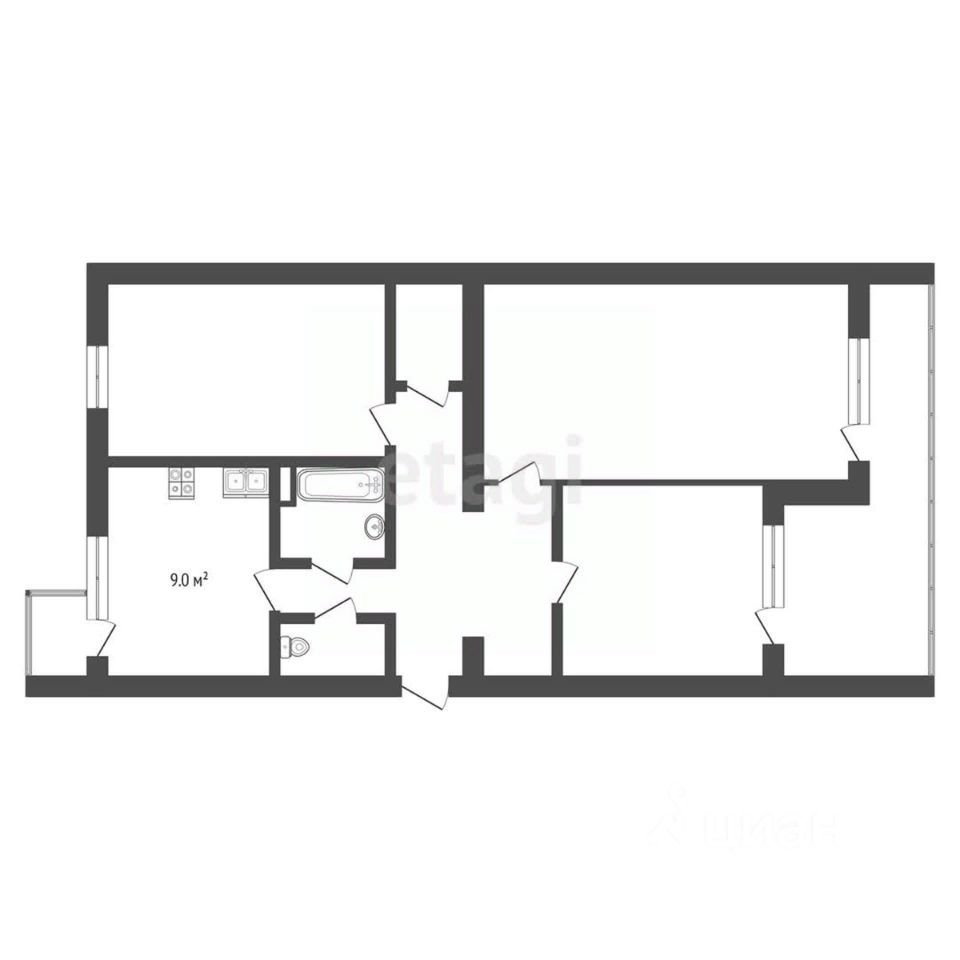 Площадь квартиры 66,3 кв.м., центральное отопление.