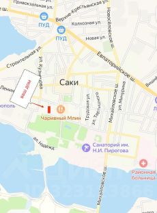 Квартира находится на в самом центре г.Саки, красивый вид из окна, выход из подъезда: с одной стороны на улицу Ленина, с другой стороны на пешую улицу Революции,