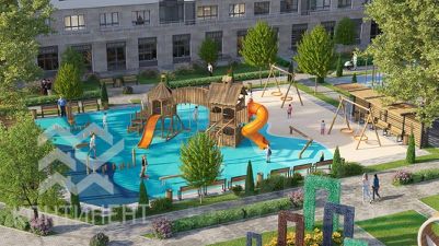 Все для активности: Современные детские площадки с безопасным резиновым покрытием, уличные спортивные зоны для всех возрастов и веранды кафе, где приятно провести время, наблюдая за играющими детьми.