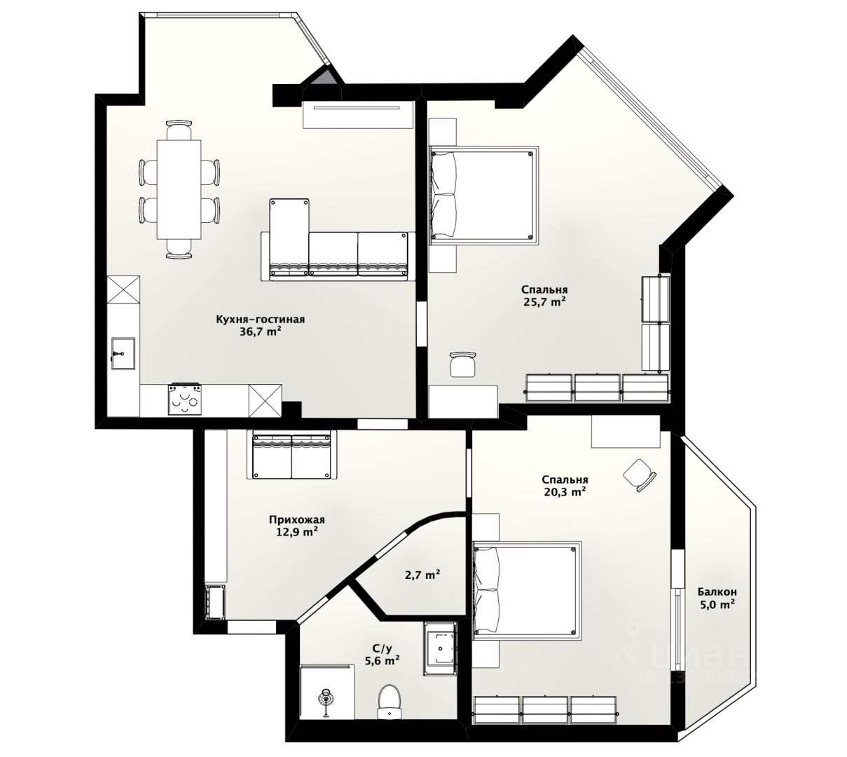 — Квартира просторная, с удобной планировкой: 2 большие комнаты с панорамными видами, прихожая, 2 санузла, кухня-гостиная с выходом на балкон.